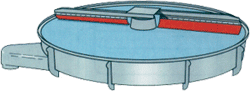 轉刷清網系統依靠布置在篩網下的毛刷旋轉清網,適用于球形、結晶體以及脆性物料,此機構轉刷的支持臂由安裝在底盤上的減速器驅動。